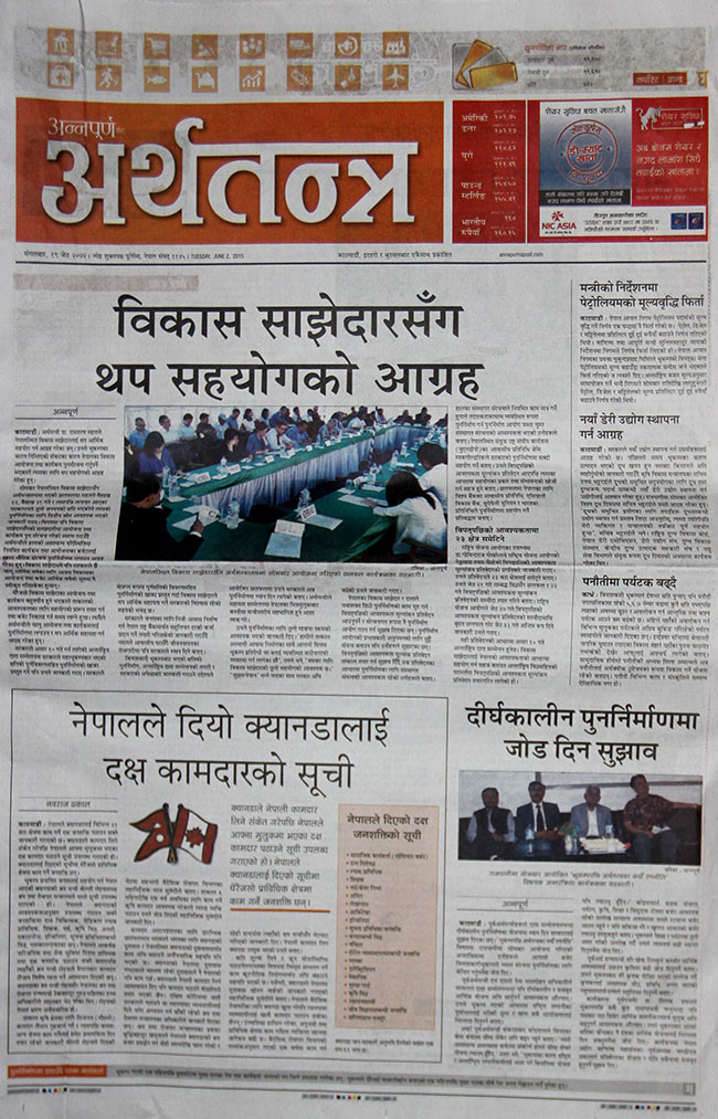 राजधानीबाट मंगलबार प्रकाशित आर्थिक खबरहरु